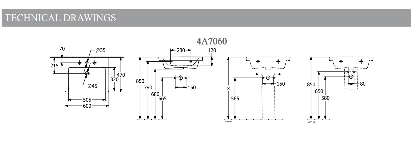 SUBWAY 3.0 Умивальник 600x470 мм (4A706001) Titan Ceram