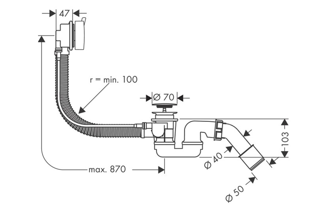 Сифон Axor S для нестандартних ванн 58318670, Matt Black