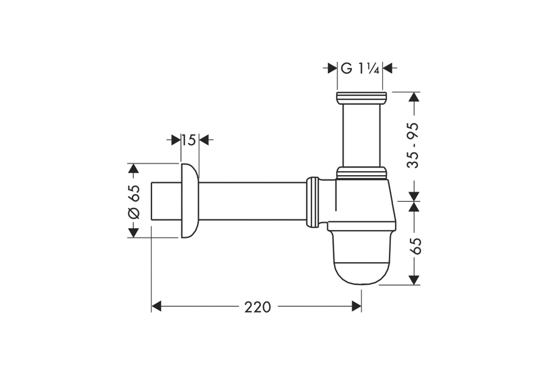 відстань регулювання 35-95 мм;відстань до стіни 220 мм;висота підпору 30 мм;введення розміру підключення: G 1¼