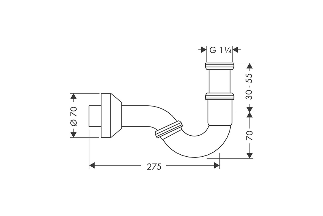 відстань регулювання 30 - 55 мм,відстань до стіни 275 мм,сифон - висота підпору 50 мм,введення розміру підключення: G 1¼.