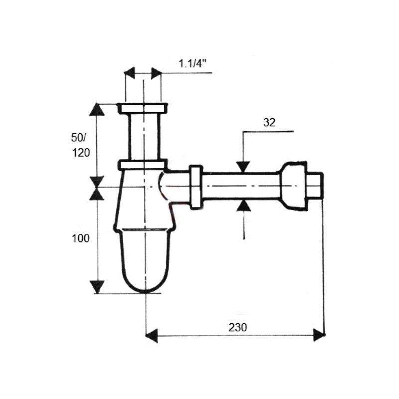 Сифон для умивальника без зливу (11/4х32 мм) 200-M PREMIUM