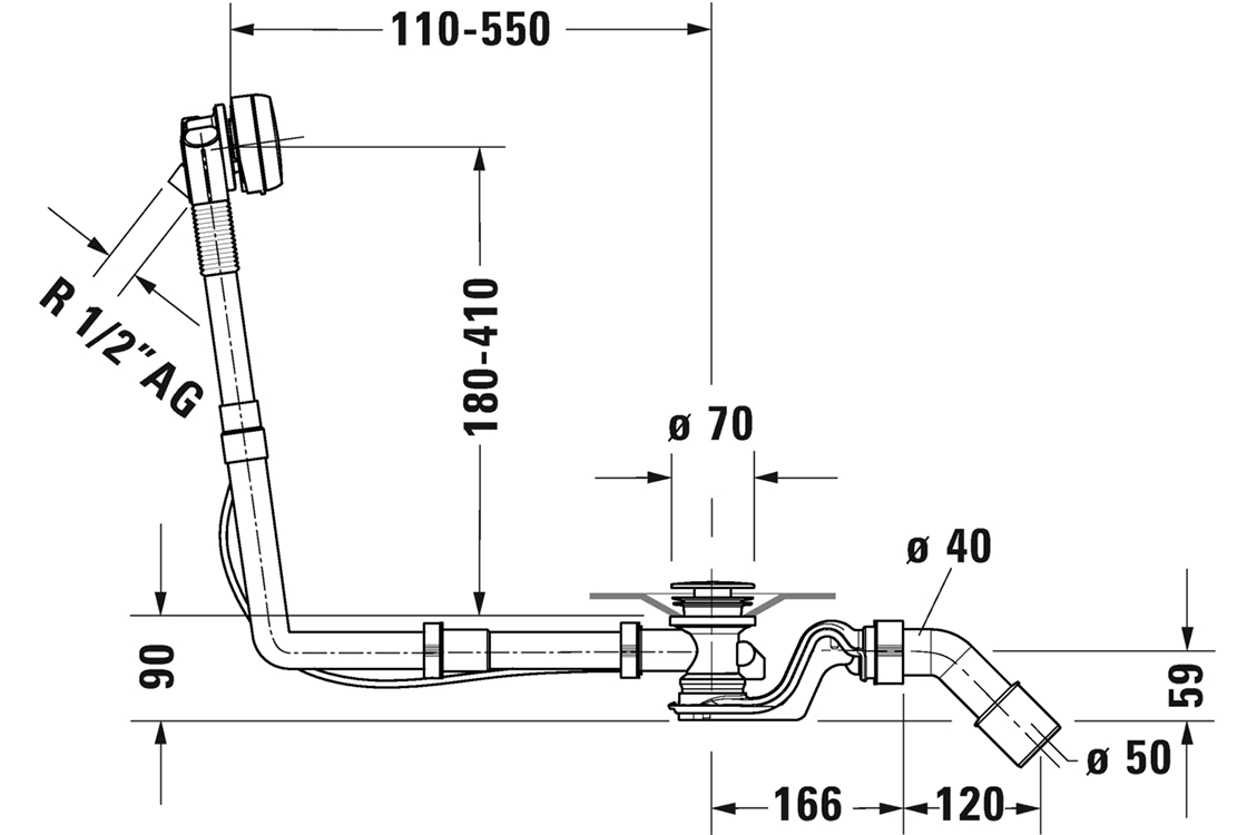 З входом води, для ванн Happy D.2, Happy D.2 Plus, з гнучким шлангом, діаметр виходу 52 мм.