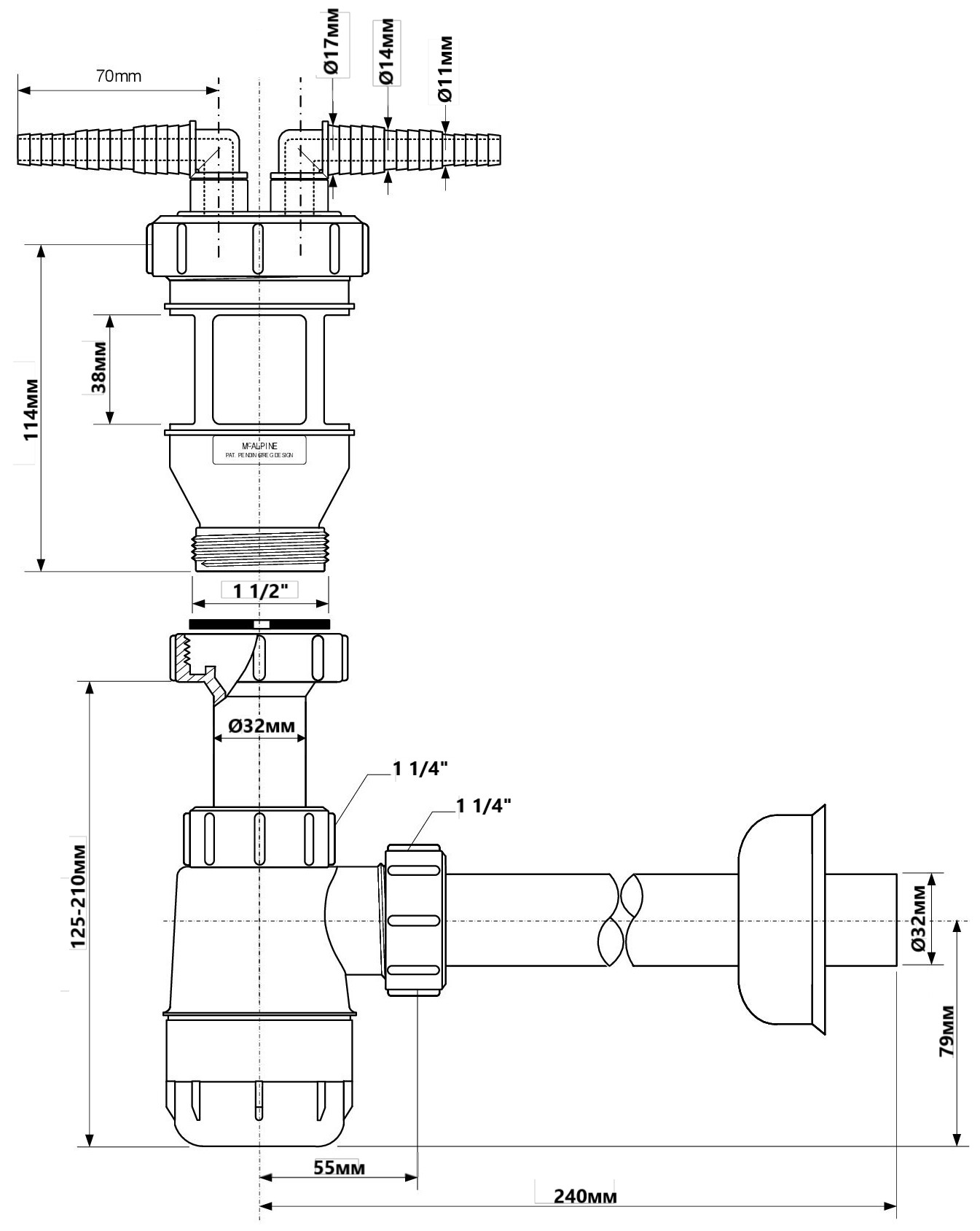 Сифон з двома приймальними входами 11/14/17мм вихід d32мм HC2-FUNNEL