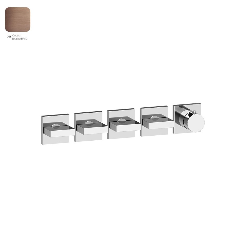 Термостат для душу Gessi Rettangolo, 4 незалежні виходи, Copper Bruched PVD (44338708) - особливі естетичні та технологічні особливості продукту створюють нові та незвичайні цінності у повсякденному житті.