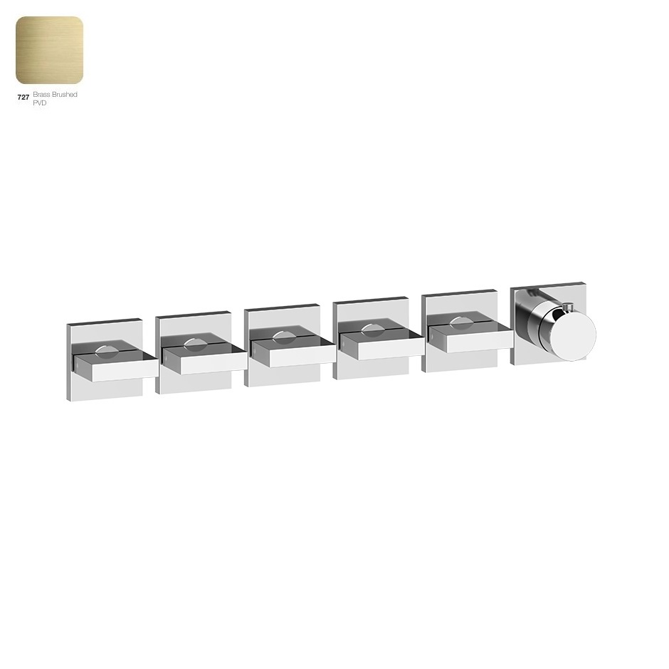 Термостат для душу Gessi Rettangolo, 5 незалежних виходу, Bruched Brass PVD (44340727) - особливі естетичні та технологічні особливості продукту створюють нові та незвичайні цінності у повсякденному житті.
