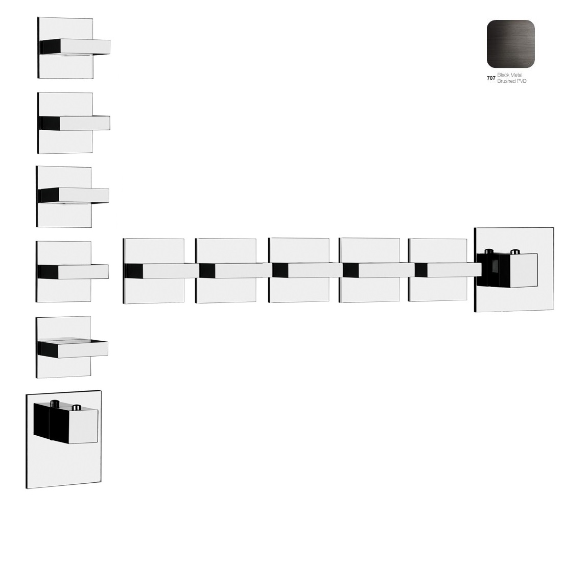 Термостат для душу Gessi Rettangolo, 5 виходів, висока продуктивність, Black Metal Bruched PVD (43220707) - особливі естетичні та технологічні особливості продукту створюють нові та незвичайні цінності у повсякденному житті.