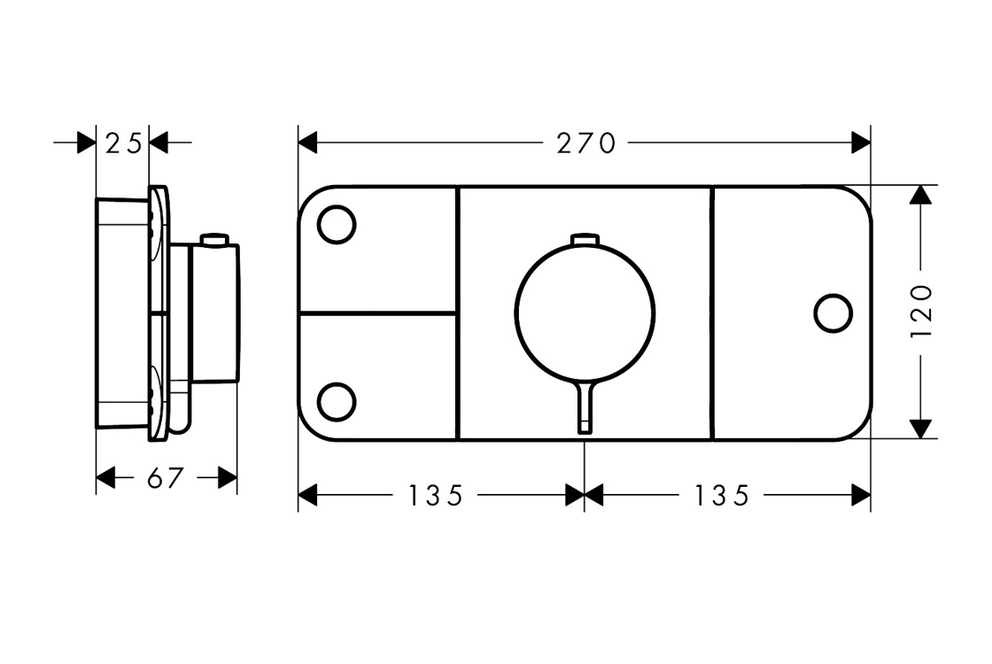 функція Eco: регулювання витрати за допомогою рукоятки,зниження витрати води приблизно на 50% залежно від напору води і особливостей установки,3 споживачі (виходи) і 1 додатковий споживач,зручне вмикання / вимикання споживачів великою кнопкою Select,можливе одночасне включення декількох споживачів,витрата води на кожного користувача: 24 л / хв,витрата води при одночасному використанні всіх споживачів: 30 л / хв,картридж термостата, клапан Select,запобіжний обмежувач при 40 ° C,регульоване обмеження температури,термостат з можливістю термічної дезінфекції,клапан зворотного потоку води,вид з'єднання: прихована частина,мінімальний робочий тиск: 1 бар,З термостатом поставляються кнопки: ручний душ, Rain великий, бічні форсунки.