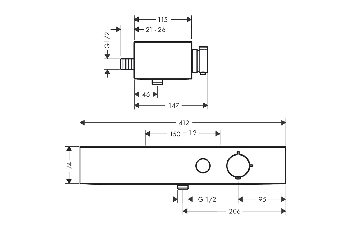 1 функція,регулювання температури і потужності,тримач ручного душу, вбудований у полицю,матеріал ручок і полиці: пластик,поверхня полиці: графіт,термостат CoolContact: запобігає нагріванню корпусу, роблячи душ ще безпечнішим,максимальна витрата при 3 барах: 16,3 л/хв,макс. робочий тиск: 10 бар,безпечна зупинка при 40 °C,регулюється обмеження температури,з ізольованою водопровідністю,зворотний клапан,з глушником,підходить для проточних водонагрівачів,міжцентрова відстань: 150 ± 12 мм,фільтр від бруду в комплекті,термостат поставляється з кнопковим ручним душем,тип з'єднання: G ½.