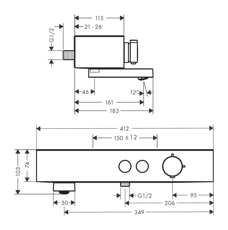 2 функції,поворотний вилив для ванни,одночасне використання 2 функцій,регулювання температури і потужності,кнопкове керування для 2 розеток,термостат CoolContact: запобігає нагріванню корпусу, роблячи душ ще безпечнішим,максимальна витрата при 3 барах: 18,7 л/хв,витрата виливу для ванни при 3 барах: 18,7 л/хв,витрата ручного душу при 3 барах: 15,9 л/хв,макс. робочий тиск: 10 бар,безпечна зупинка при 40 °C,регулюється обмеження температури,з ізольованою водопровідністю,зворотний клапан,захищений від зворотного потоку, відповідно до DIN EN 1717,з глушником,підходить для проточних водонагрівачів,полиця з пластику,поверхня полиці: графіт,тип з'єднання: G ½,приєднувальний розмір: DN15,міжцентрова відстань: 150 ± 12 мм,фільтр від бруду в комплекті,термостат поставляється з кнопками для ручного душу та ванни.
