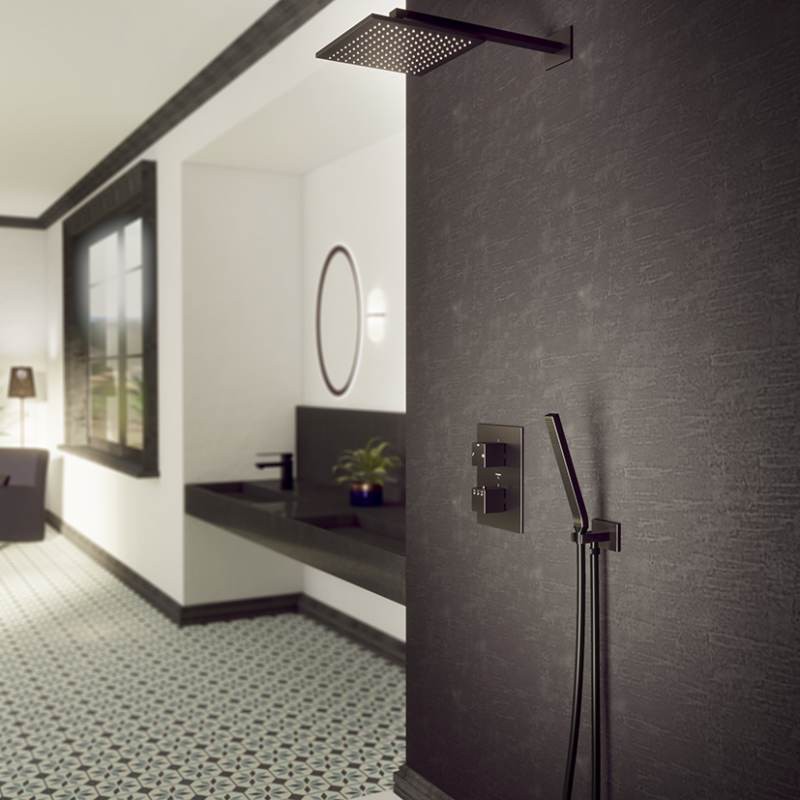 - Змішувач з термостатом для попередньої установки температури та комфортного регулювання температури. Зі вбудованим запобіжником від опіків при температурі 38°C.