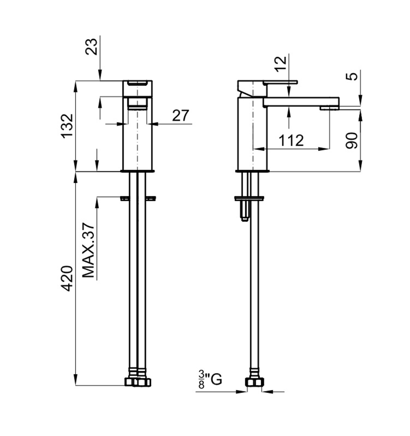 TONO Змішувач для умивальника хромований: керамічний картридж d25 мм (100184751)