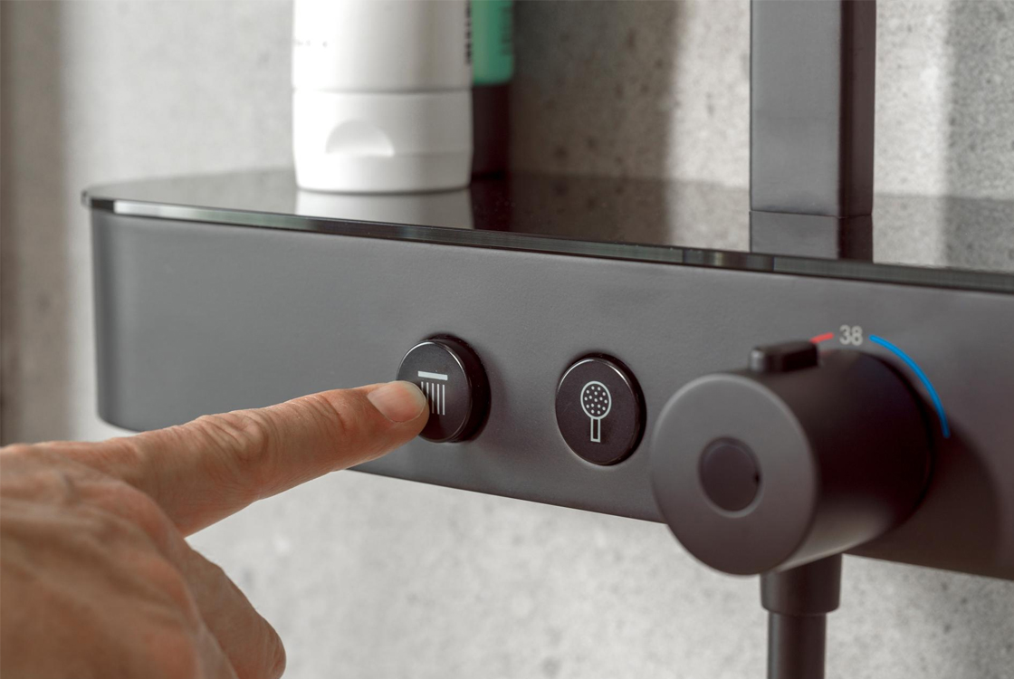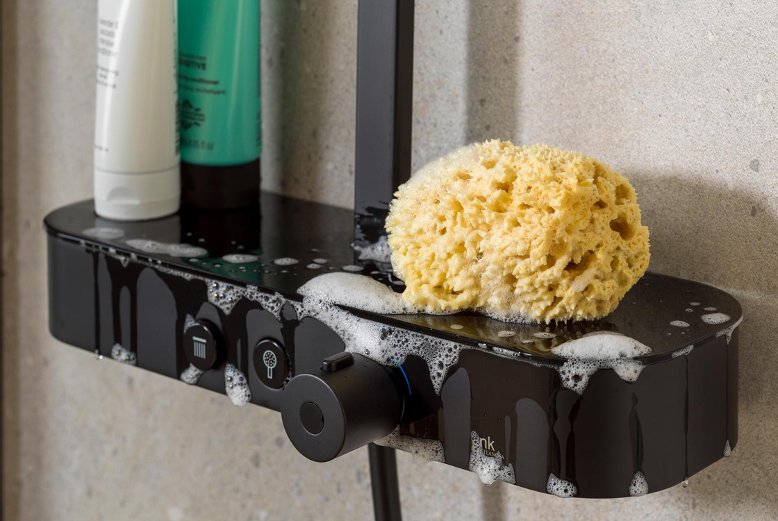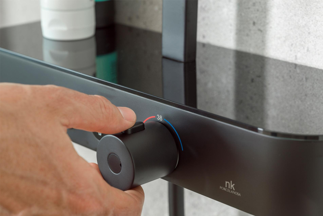 TOUCH&FEEL Душова стійка з термостатом, скляною поличкою, чорна (100291203)