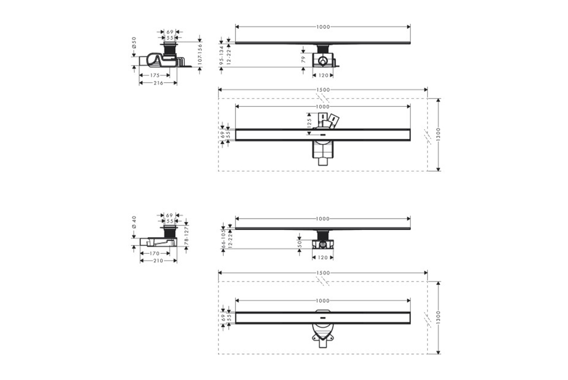 складається з: фінішного комплекту душового зливу, монтажного комплекту, попередньо зібраної ущільнювальної мембрани, інструменту для зняття решітки, сифонів,довжина 100 см,ущільнювальна мембрана 1300x1500 мм для повної герметизації всієї вологої зони,гідрозатвор: 28 мм, 50 мм,діаметр підключення: DN40, DN50,напрямок випуску: горизонтальний,регульований по висоті монтажний комплект,пропускна спроможність плоского монтажу: до 50 л/хв,пропускна спроможність стандартної установки: до 48 л/хв,підходить для плитки з товщиною до 18 мм,знімний водяний замок,сифон легко миється,інструмент для видалення решітки дозволяє легко зняти фінішний набір,зі знімним ситечком для волосся,тип ущільнення запаху: рідина,мінімальна монтажна висота 43 мм,висота базового набору: 30 мм,матеріал сифона: ABS, поліпропілен (PP),тип монтажу: вільно в підлогу,вибір двох різних сифонів,підходить для первинного дренажу,