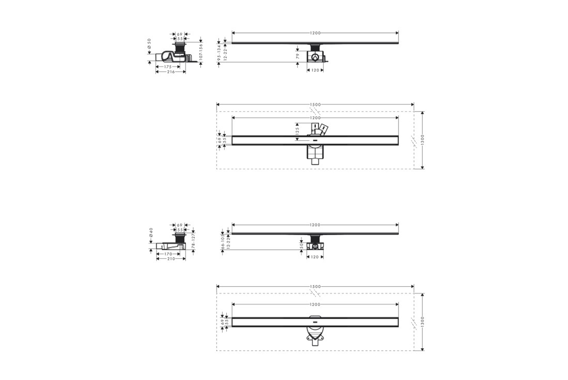 складається з: фінішного комплекту душового зливу, монтажного комплекту, попередньо зібраної ущільнювальної мембрани, інструменту для зняття решітки, сифонів,довжина 120 см,ущільнювальна мембрана 1300x1500 мм для повної герметизації всієї вологої зони,гідрозатвор: 28 мм, 50 мм,діаметр підключення: DN40, DN50,напрямок випуску: горизонтальний,регульований по висоті монтажний комплект,пропускна спроможність плоского монтажу: до 50 л/хв,пропускна спроможність стандартної установки: до 48 л/хв,підходить для плитки з товщиною до 18 мм,знімний водяний замок,сифон легко миється,інструмент для видалення решітки дозволяє легко зняти фінішний набір,зі знімним ситечком для волосся,тип ущільнення запаху: рідина,мінімальна монтажна висота 43 мм,висота базового набору: 30 мм,матеріал сифона: ABS, поліпропілен (PP),тип монтажу: вільно в підлогу,вибір двох різних сифонів,підходить для первинного дренажу,