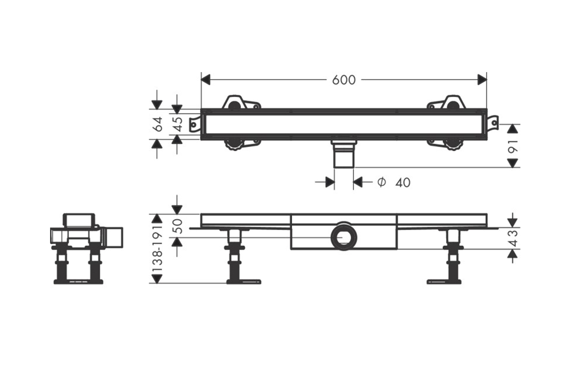 складається з: плиткової решітки, монтажного набору, сифона, інструменту для зняття решітки, попередньо змонтованої ущільнювальної мембрани,довжина 60 см,гідрозатвор: 30 мм,діаметр підключення: DN40,напрямок випуску: горизонтальний,регульований по висоті монтажний комплект,пропускна здатність до 27 л/хв,підходить для будь-якого типу плитки з товщиною до 18 мм,знімний водяний замок,сифон легко миється,інструмент для видалення решітки дозволяє легко зняти фінішний набір,тип ущільнення запаху: рідина,мінімальна монтажна висота 43 мм,висота базового набору: 30 мм,матеріал сифона: ABS,тип монтажу: вільно в підлогу,глибина інкрустації плиткою: 12 мм,підходить для первинного дренажу,
