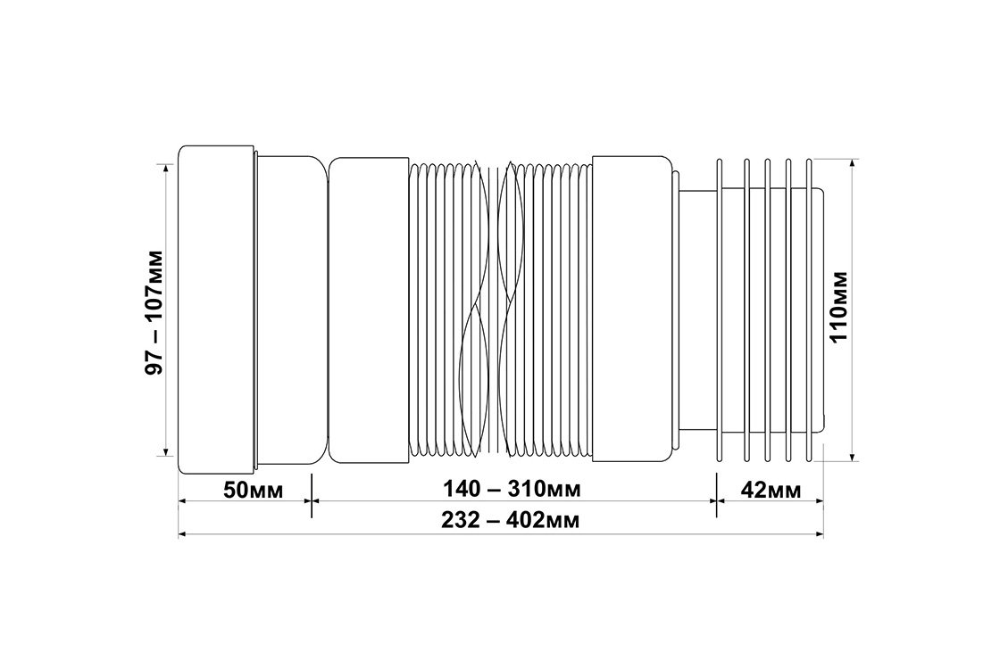 Гнучке каналізаційне з'єднання довжиною 230-400 мм з подовженим входом