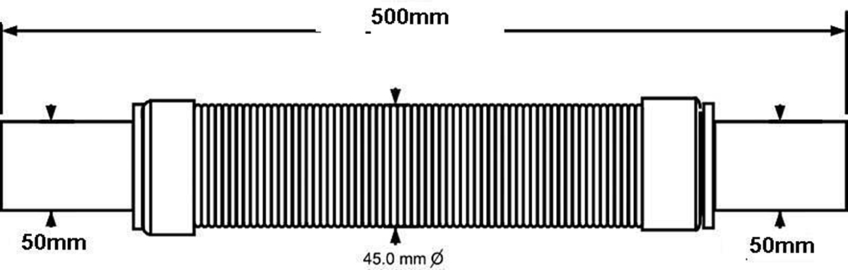 Гнучка з'єднувальна труба "McALPINE FLEXRP50 ZE3" має довжину 500 мм., вона може скорочуватися до потрібної довжини.