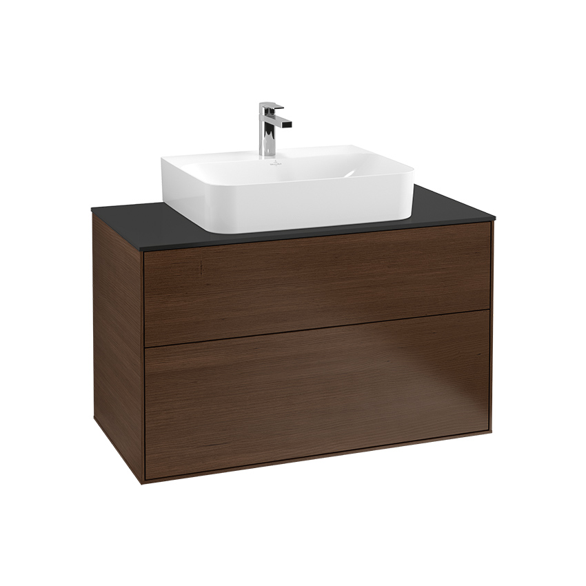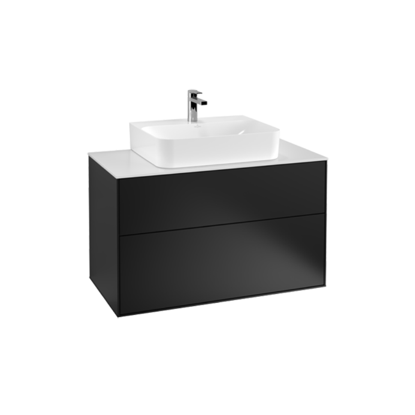 Тумба під раковину Villeroy & Boch Finion (F10100PD) з 2 висувними відділеннями з протиковзким килимком. Раковина встановлюється по центру.