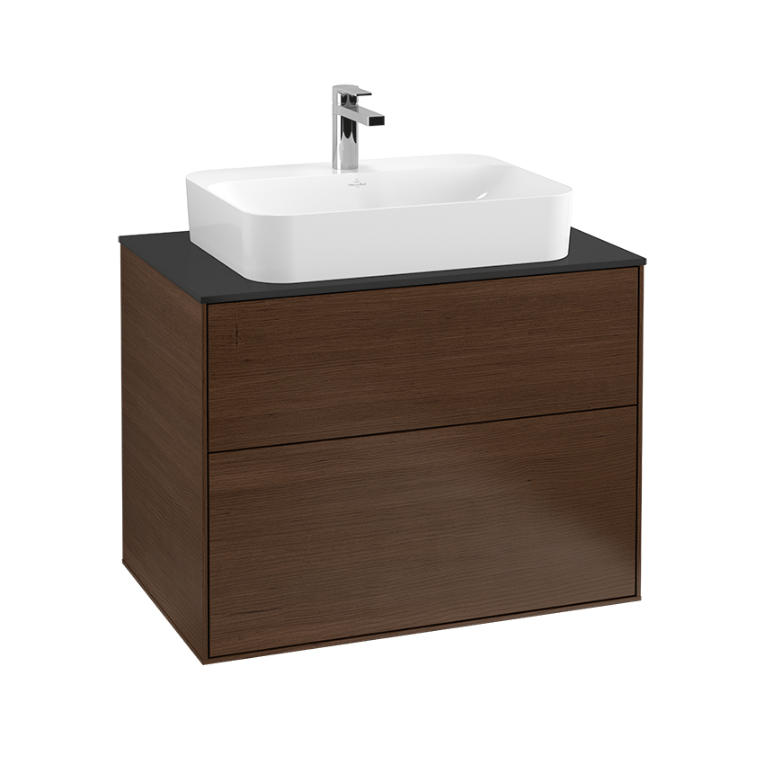Тумба під раковину Villeroy & Boch Finion (F34100PD) з 2 висувними відділеннями з протиковзким килимком. Раковина встановлюється по центру.
