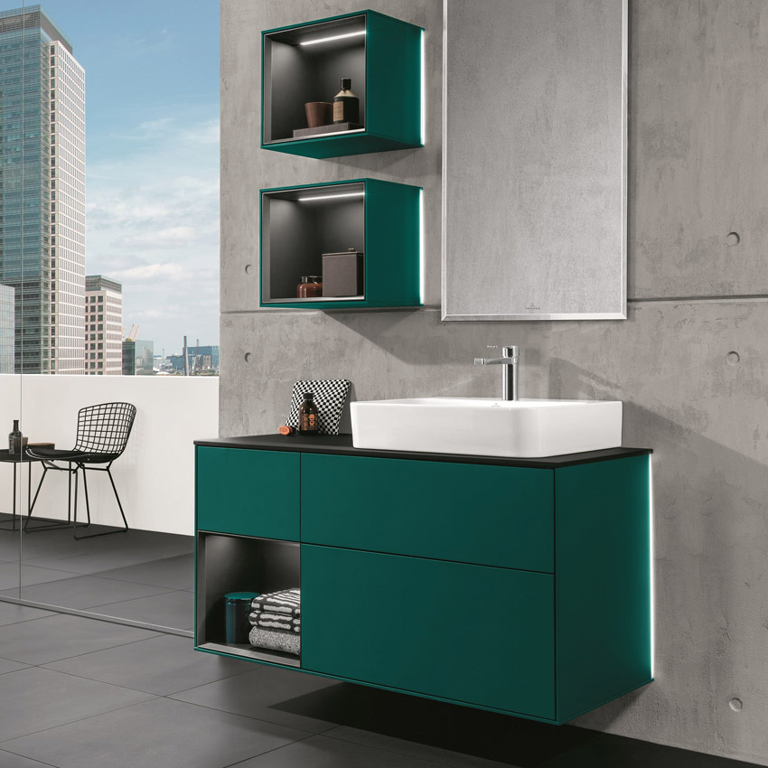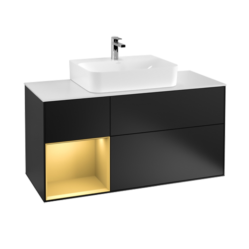 Тумба під раковину Villeroy & Boch Finion (G411HFPD) з 3 висувними відділеннями з протиковзким килимком і з LED-підсвіткою (1x LED / 2,3Вт. 2x LED / 4,2Вт. A-A ++. 2700K нейтральний білий / 6480K білий денне світло) .