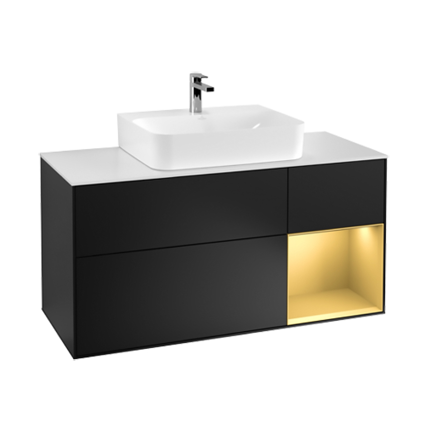 Тумба під раковину Villeroy & Boch Finion (G421HFPD) з 3 висувними відділеннями з протиковзким килимком і з LED-підсвіткою (1x LED / 2,3Вт. 2x LED / 4,2Вт. A-A ++. 2700K нейтральний білий / 6480K білий денне світло) .