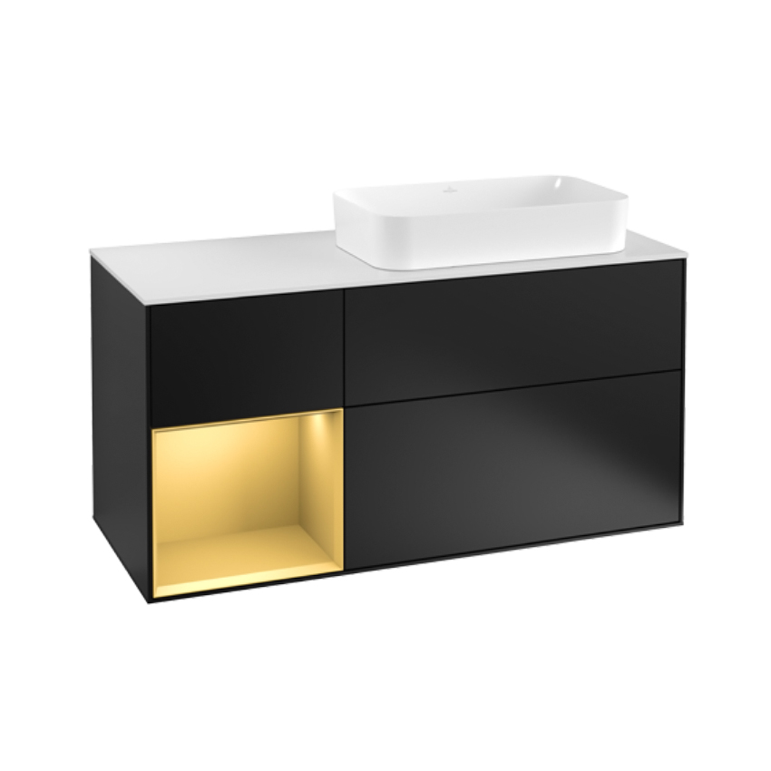 Тумба під раковину Villeroy & Boch Finion (G681HFPD) з 3 висувними відділеннями з протиковзким килимком і з LED-підсвіткою (1x LED / 2,3Вт. 2x LED / 4,2Вт. A-A ++. 2700K нейтральний білий / 6480K білий денне світло) .