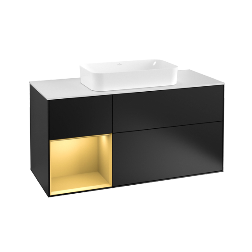 Тумба під раковину Villeroy & Boch Finion (G701HFPD) з 3 висувними відділеннями з протиковзким килимком і з LED-підсвіткою (1x LED / 2,3Вт. 2x LED / 4,2Вт. A-A ++. 2700K нейтральний білий / 6480K білий денне світло) .