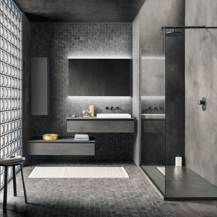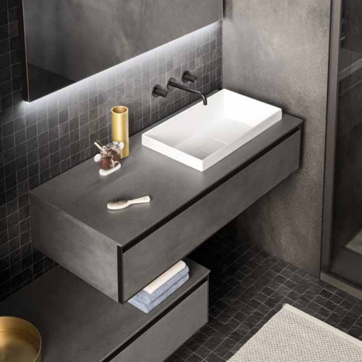 Тумба з умивальником Arbi Absolute 32.D 85х50 см, Laminam Calce Antracite (Absolute 32.D) - меблі для ванних кімнат з високоякісних матеріалів, які виражають виняткову вишуканість.