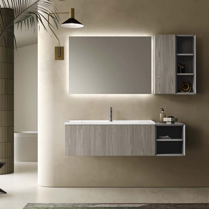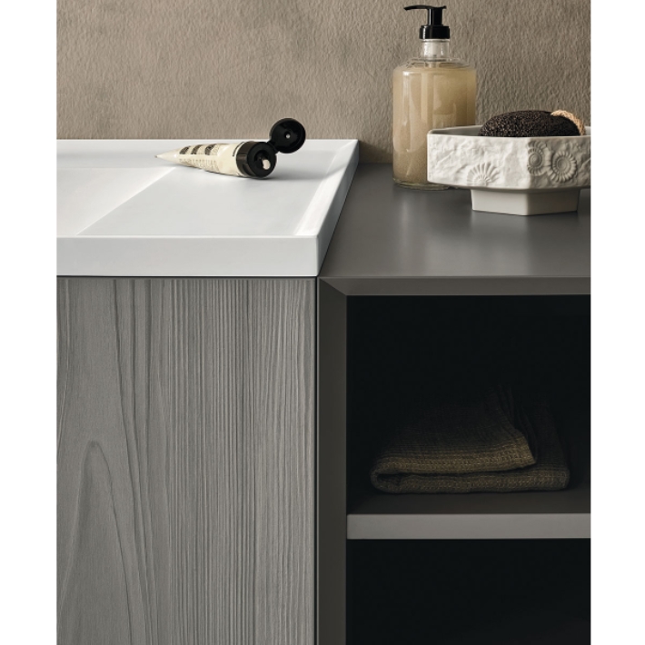 Тумба з умивальником Arbi Teso 05 140х50.5 см, Abete Dublino/Grigio Londra opaco (Teso 05) - велика модульність та численні варіанти оздоблення для сучасної та модної ванної кімнати.