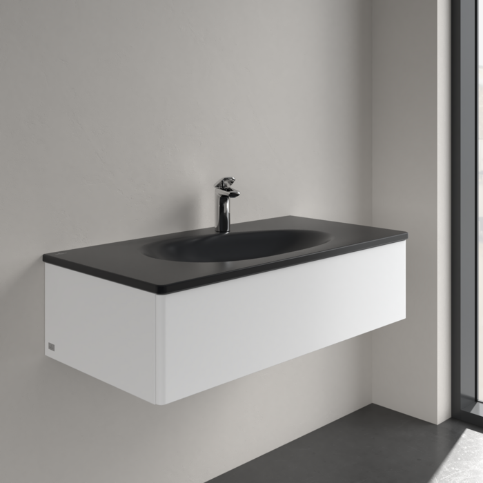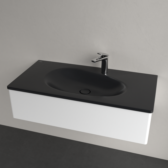 Умивальник накладний Villeroy&Boch Antao 100х50см, з прихованим переливом, з отвором під змішувач, Ceramic Plus, Pure Black (4A76ABR7)