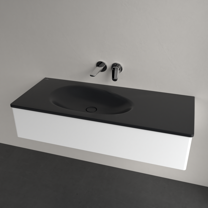 Умивальник накладний Villeroy&Boch Antao 120х50см, без переливу, без отвору під змішувач, Ceramic Plus, Pure Black (4A77L3R7)