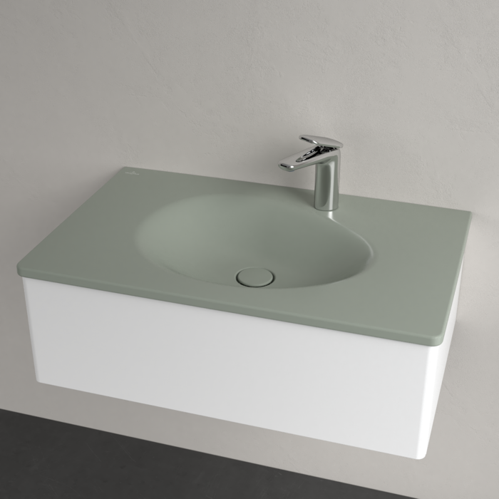 Умивальник накладний Villeroy&Boch Antao 80х50см, з прихованим переливом, з отвором під змішувач, Ceramic Plus, Morning Green (4A7584R8)