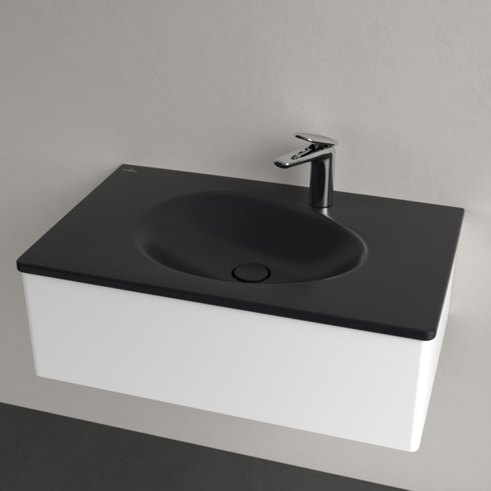Умивальник накладний Villeroy&Boch Antao 80х50см, з прихованим переливом, з отвором під змішувач, Ceramic Plus, Pure Black (4A7584R7)