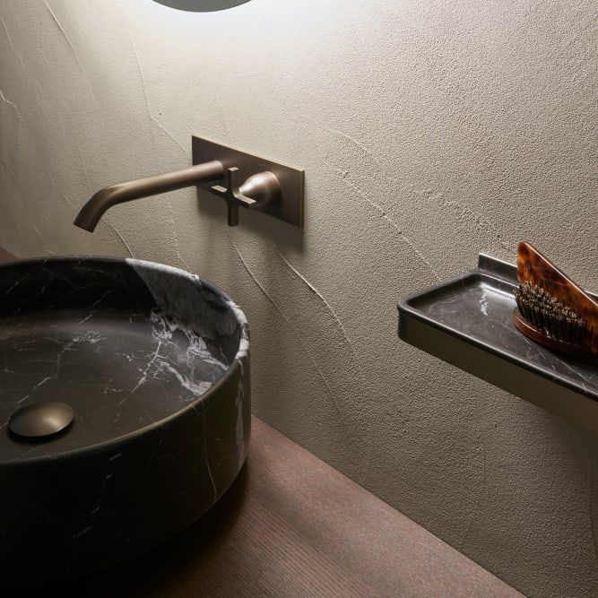 - умивальник з чорного мармуру Marquina на п'єдесталі для настінного водовідведення