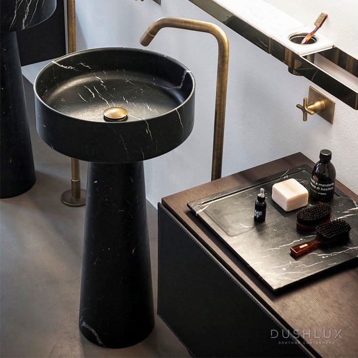 - умивальник з чорного мармуру Marquina на п'єдесталі для підлогового водовідведення