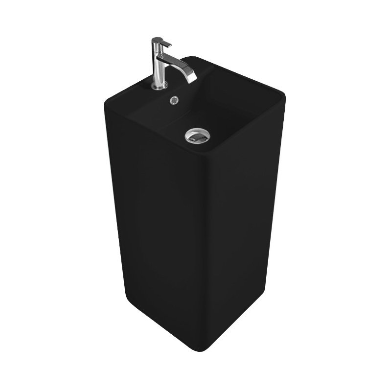Умивальник окремо стоячий Nic Design Semplice 40х40х85 см з отвором під змішувач, злив у стіну, чорний глянець (001371008)