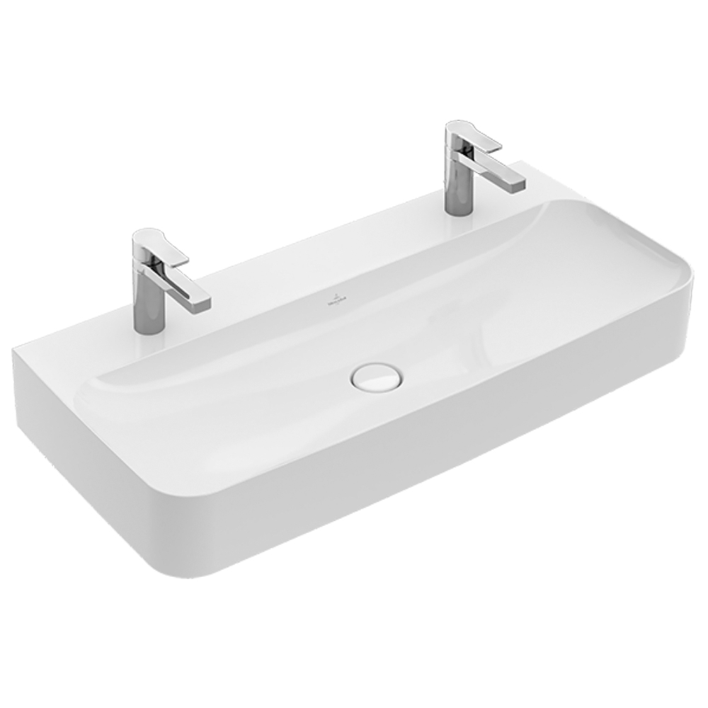 Раковина Villeroy & Boch Finion 4168A1R1 має два вирізних отвори під змішувачі, без переливу. Незамкнений клапан з керамічною кришкою. Настінний монтаж.