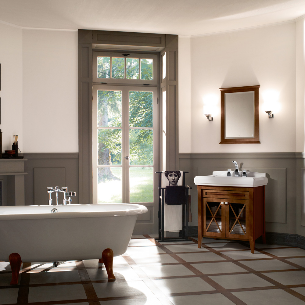 Раковина Villeroy & Boch Hommage 7101KGR1 має різьблений отвір під змішувач, з переливом. Шліфований низ. Настінний монтаж.