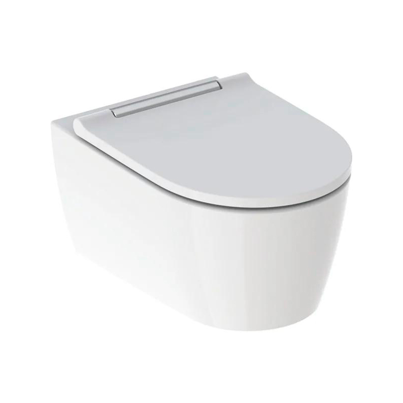Унітаз підвісний Geberit One Rimfree TurboFlush з сидінням soft-close, 54х37 см, білий, накладка глянцевий хром (500.202.01.1)