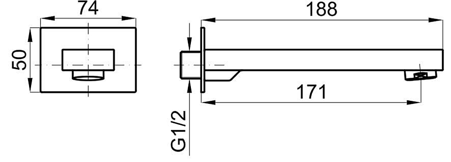 URBAN Вилив на ванну, виступ 188 мм, хромований (100150523)