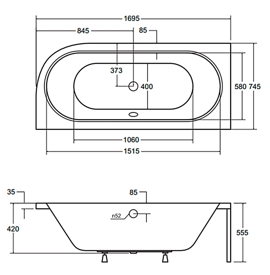 Ванна акрилова AVITA 170х75 Ліва (соло) без ніг