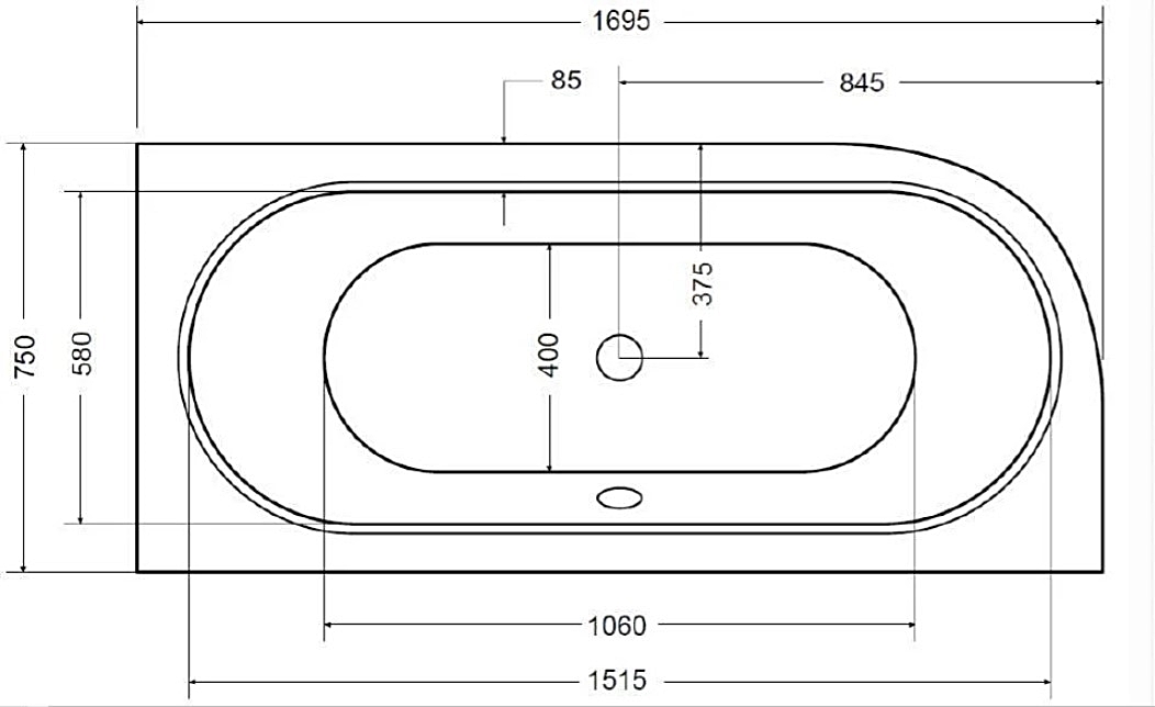 Ванна акрилова AVITA 170х75 Права (соло) без ніг