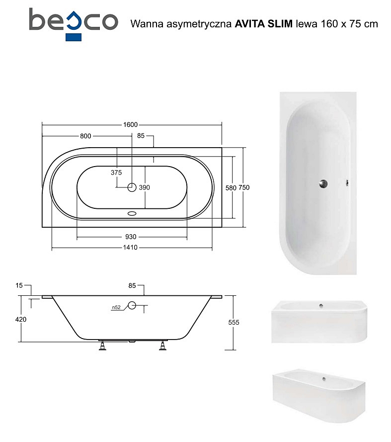 Відгуки про "Ванна акрилова AVITA SLIM 160х75 Ліва (соло) без ніг"