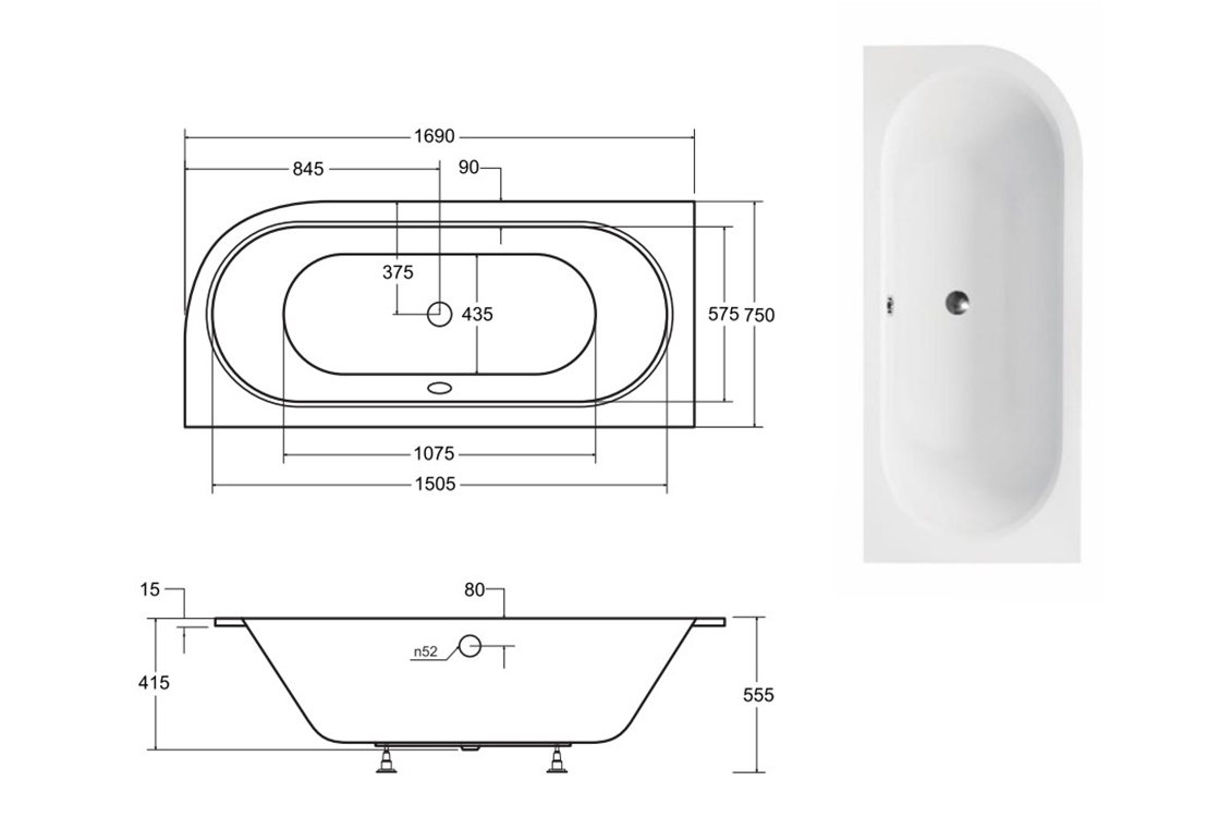 Ванна акрилова AVITA SLIM 170х75 ліва (соло) без ніг
