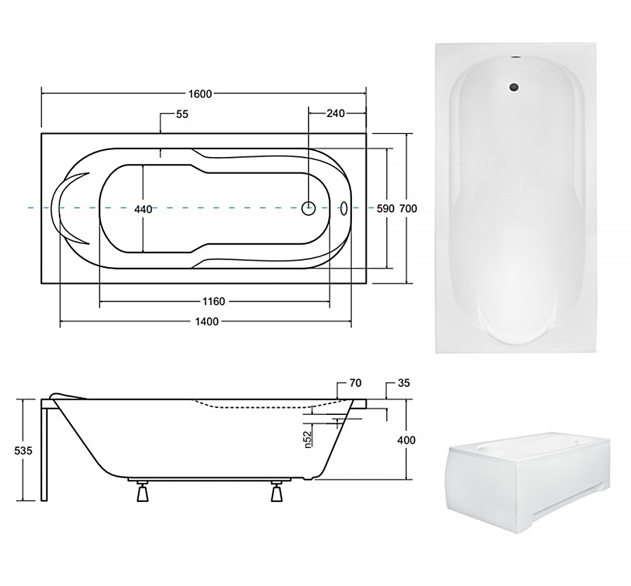 Відгуки про "Ванна акрилова BONA 160х70 соло / без ніг"