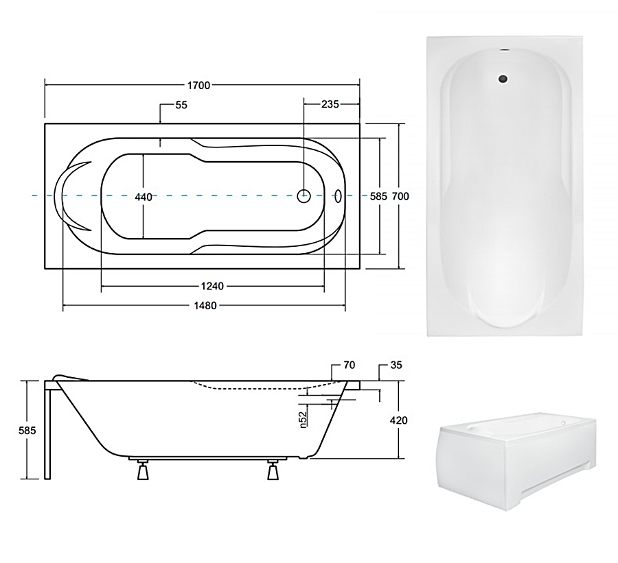 Ванна акрилова BONA 170х70 (соло) без ніг