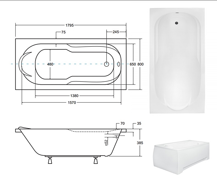 Відгуки про "Ванна акрилова BONA 180х80 (соло) без ніг"