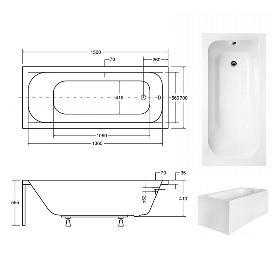 Відгуки про "Ванна акрилова CONTINEA 150х70 (соло) без ніг"