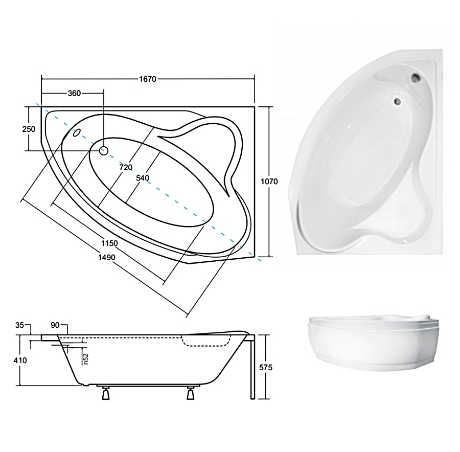 Ванна акрилова DELFINA 166х107 Права (соло)
