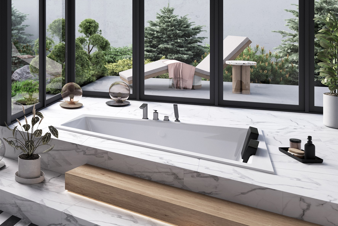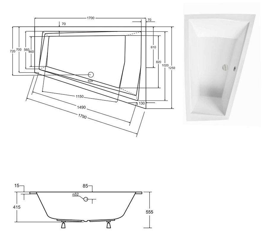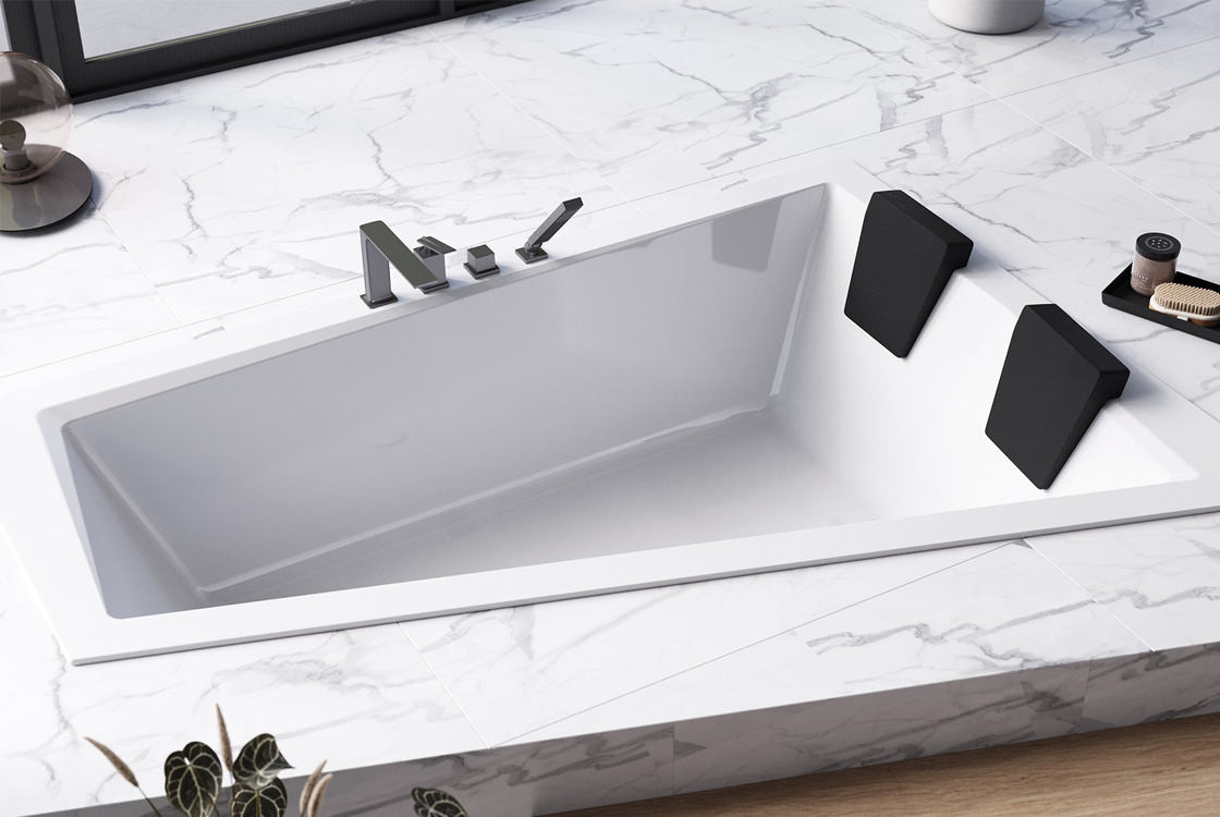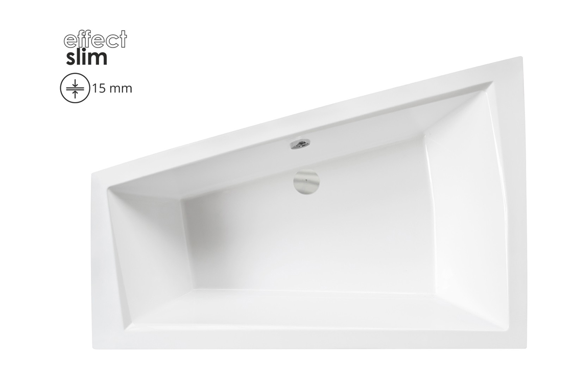 Ванна INTIMA DUO SLIM 170х125 асиметрична, кутова правобічна виконана з білого акрилу. Відрізняється ультранизьким бортикои 15 мм над основою, роблячи таку модель ідеальною для облицювання плиткою. Ніжки комплектуються окремо.